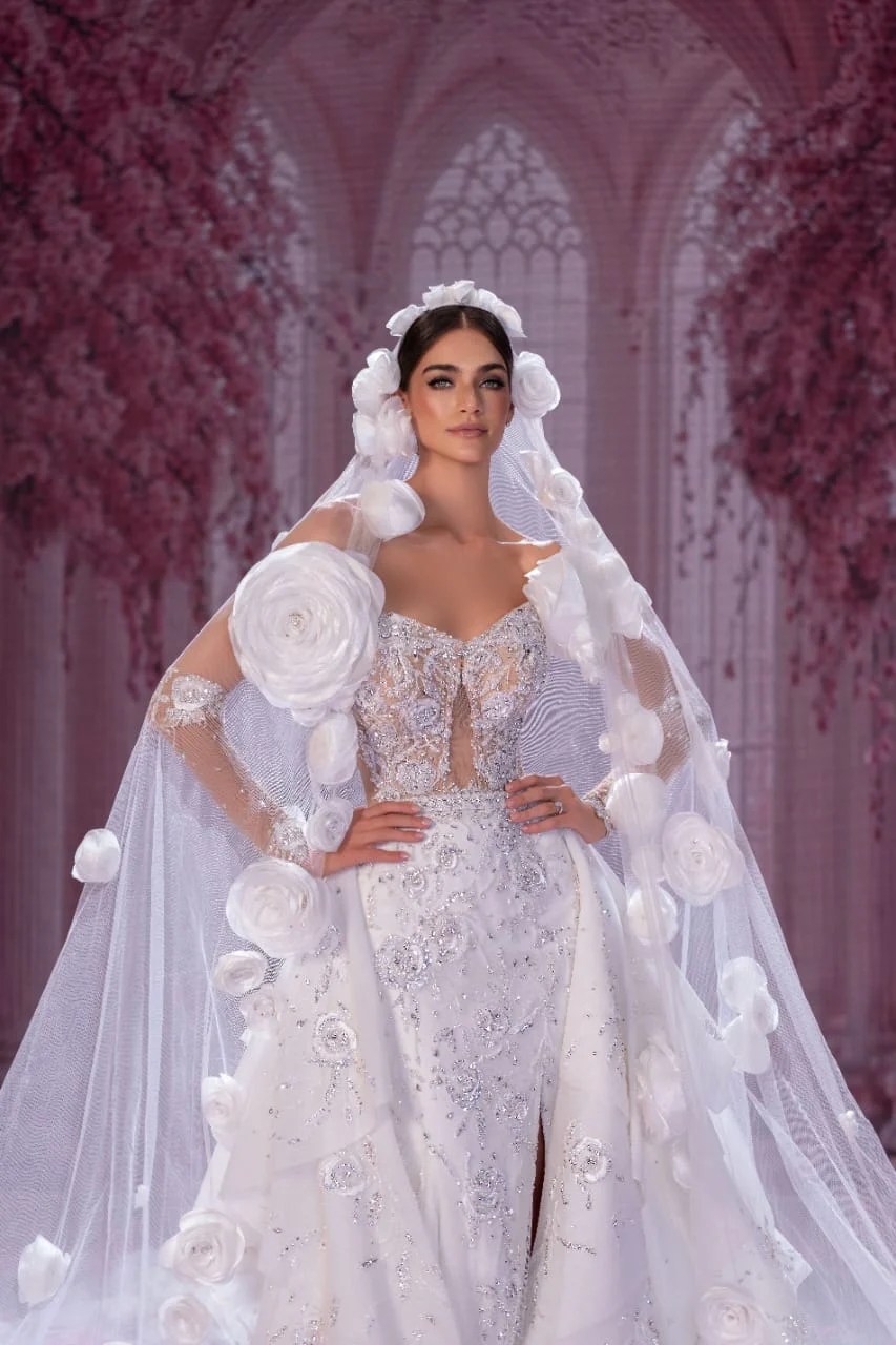 المجموعة التي ضمّت 27 تصميماً فاخراً تنوّعت بين فساتين السهرة والأعراس، جسّدت فلسفة أن الجمال الحقيقي لا يخضع لمواسم، بل يخلق موسمه الخاص. وفي خروجٍ أنيق عن التقاليد اللونية لموسم الشتاء، مزجت التصاميم بين الليلكي والنيلي والزهري الفاتح مع تدرجاته، بأقمشة نابضة بالضوء، وزخارف يدوية تحمل لمسات الهوت كوتور الفاخرة، وكأن كل فستان هو قصيدة تُكتَب بالخيط والإبرة.