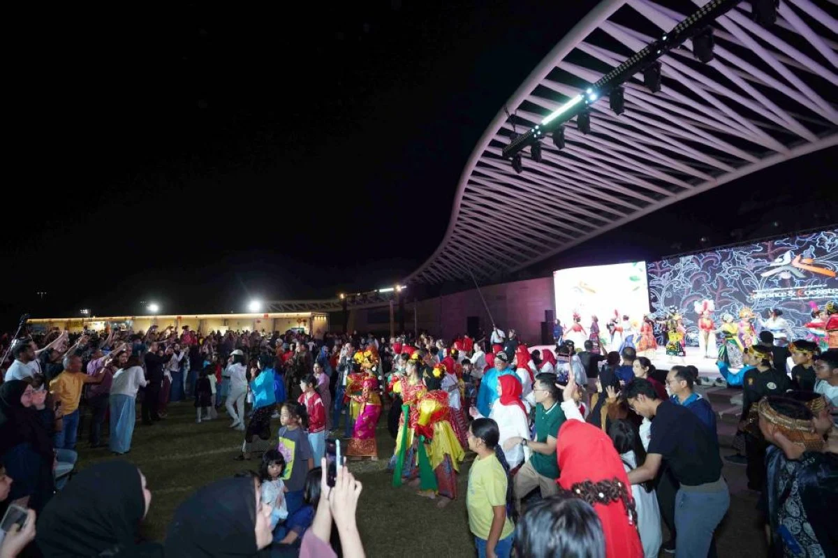 وكونت إيقاعات وتراث إندونيا الفقرة الأهم في العروض التي استمرت ساعة ونصف.