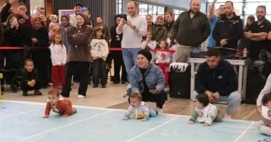 نظّمت مراكز تسوق في مدينة ريزي شمال تركيا مسابقة حبو الأطفال كفعالية طريفة تشترك فيها العائلات. شارك في الحدث 36 طفلاً تراوحت أعمارهم بين 7 و12 شهراً. بدأ الأطفال الزحف من خط البداية نحو والديهم عند خط النهاية، بينما كان بعض الأهالي يحضرون ألعاباً وزجاجات حليب لتشجيع أطفالهم خلال المسار. كما استخدمت بعض العائلات هواتفهم المحمولة كأداة تشجيع إضافية وتفاعلوا مع الأطفال بحماسة.