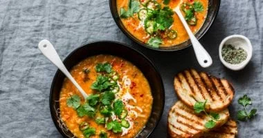 يُفضل تقديمه كعشاء دافئ خلال ليالي الشتاء ويمتاز بسرعة التحضير. يمكن تقليل الملح إذا لزم الأمر واختيار مرق خضار منخفض الصوديوم. هذا الخيار مناسب لمن يريد وجبة سهلة وسريعة تخفف من الجوع مع الحفاظ على الصحة.