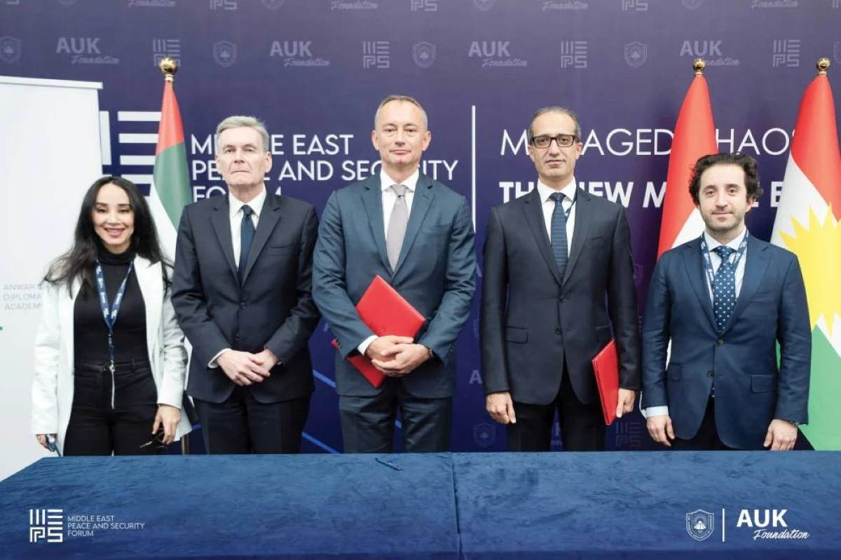 وقعت أكاديمية أنور قرقاش الدبلوماسية مذكرة تفاهم مع منتدى السلام والأمن في الشرق الأوسط، وهو المعهد التابع للجامعة الأمريكية في محافظة دهوك، على هامش أعمال منتدى السلام والأمن في الشرق الأوسط 2025 الذي يعقد هذا العام تحت عنوان «الفوضى المُدارة: الشرق الأوسط الجديد؟».