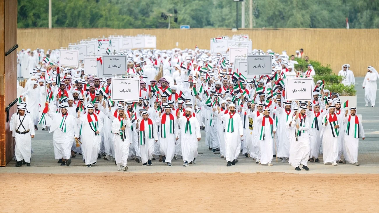 شارك أبناء القبائل في مسيرة الاتحاد أمس، وتوافد أعداد غفيرة من المواطنين تزامناً مع عيد الاتحاد الـ54، ليعبّروا عن فخرهم وسعادتهم بالوجود في هذا الاحتفال والعرس الوطني الذي يجسد أسمى صور التلاحم والوحدة بين أبناء المجتمع الإماراتي في ظل القيادة الرشيدة وتحت راية البيت المتوحد.