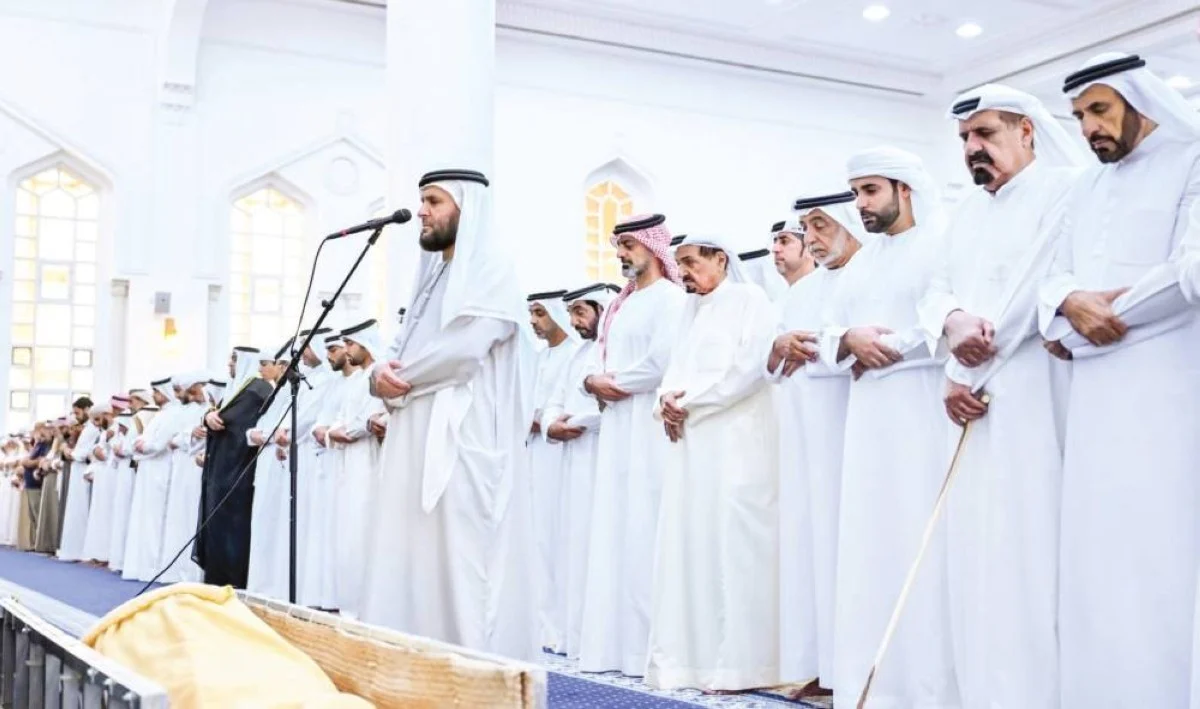 وأدى الصلاة إلى جانب سموهما الشيخ أحمد بن حميد النعيمي، ممثل صاحب السمو حاكم عجمان للشؤون الإدارية والمالية، والشيخ حميد بن عمار بن حميد النعيمي، عضو المجلس التنفيذي، والشيخ صقر بن راشد النعيمي.
