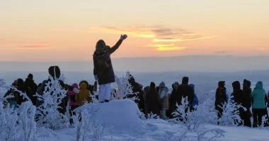 تُنظّم بلدية مورمانسك فعالية استقبال أول شروق للشمس في تل سولنيشنايا غوركا، بمشاركة الآلاف وتحت درجات حرارة تبلغ -26 درجة مئوية احتفالاً بعودة الضوء بعد الليل القطبي. يؤكد الحدث انتهاء ليل القطب الشمالي وتوفير رؤية أول شعاع للشمس عقب أسابيع من الظلام. يشارك أكثر من 3200 شخص في الصعود إلى قمة التلة رغم البرد القارس، وتشتد أجواء الحماس عبر الرقص والألعاب للتدفئة أثناء انتظار الضوء.