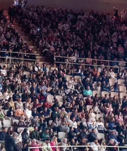 منذ اللحظات الأولى، بدا التفاعل واضحًا بين الجمهور والفنانين، حيث تحوّل مسرح المجاز إلى مساحة نابضة بالفرح والغناء الجماعي، وسط إضاءة مبهرة عزّزت من إحساس الحضور بكل تفصيلة موسيقية، ليعيش الجمهور ليلة فنية متكاملة.