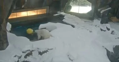 أظهرت مقاطع فيديو نشرها الحساب الرسمي لحديقة الحيوانات على فيسبوك دباً قطبيًا يُدعى كالو وهو يتفاعل مع الثلوج. ويبلغ عمره ثلاث سنوات. أظهرت اللقطات أنه يدفع كرة باتجاه بركة المياه ثم يقفز خلفها بحماس، كما واصل اللعب بسحب جسده فوق الثلوج ودفع ألعاب الإثراء الخاصة به.