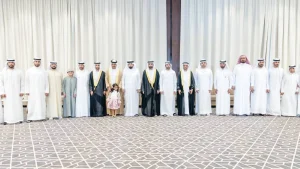حضر سمو الشيخ حمدان بن محمد بن راشد آل مكتوم، ولي عهد دبي، نائب رئيس مجلس الوزراء، وزير الدفاع، رئيس المجلس التنفيذي لإمارة دبي، وسمو الشيخ مكتوم بن محمد بن راشد آل مكتوم، النائب الأول لحاكم دبي، نائب رئيس مجلس الوزراء، وزير المالية، وسمو الشيخ أحمد بن محمد بن راشد آل مكتوم، النائب الثاني لحاكم دبي، رئيس مجلس دبي للإعلام، حفل الاستقبال الذي أقامه سيف بن محمد بن أحمد بن سليمان في مجلس ند الشبا بمناسبة زفاف نجله راشد على كريمة راشد بن قحيد بالهول المهيري.