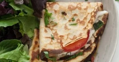 تتكون المكونات من كوب شوفان مطحون، حبة بيض، ¾ كوب حليب، ربع ملعقة صغيرة ملح، 50 جرام جبنة مبشورة، 2 ملعقة كبيرة فلفل ألوان مقطع، 2 ملعقة كبيرة كوسة مبشورة ومعصورة من الماء، و1 ملعقة صغيرة زيت لدهن الطاسة. يُخلط الشوفان مع البيض والحليب والملح جيداً حتى نحصل على خليط متجانس. تُسخن طاسة غير لاصقة وتُدهن بقليل من الزيت، ثم يُسكب مقدار من الخليط ويفرد بشكل دائري رقيق ويُترك حتى ينضج من الأسفل قبل قلبه. تُضاف الجبنة والخضار على نصف الكريب، ثم يُطوى ويُترك دقيقة حتى تذوب الجبنة، ويُقدم ساخناً مع الخضار الطازج وكوب من اللبن أو الشاي.