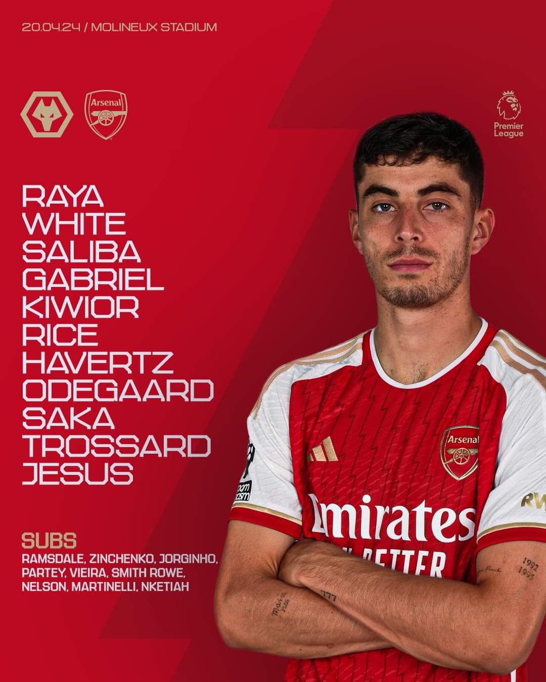 أرتيتا يعلن تشكيلة آرسنال لمواجهة وولفز