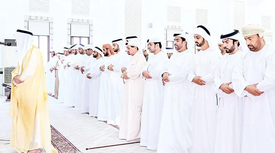 النعيمي وسعود بن صقر والشيوخ وأبناء الإمارات يؤدون صلاة الاستسقاء