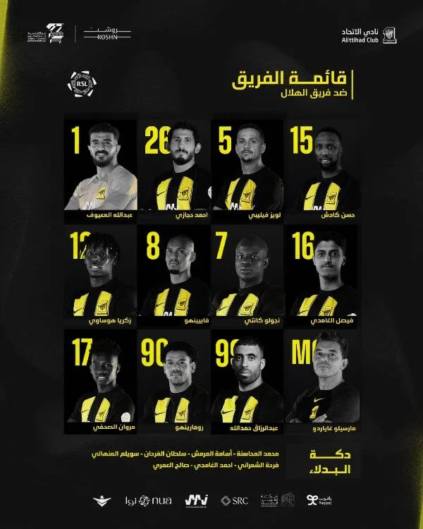 تشكيلة الكلاسيكو السعودي بين الهلال والاتحاد