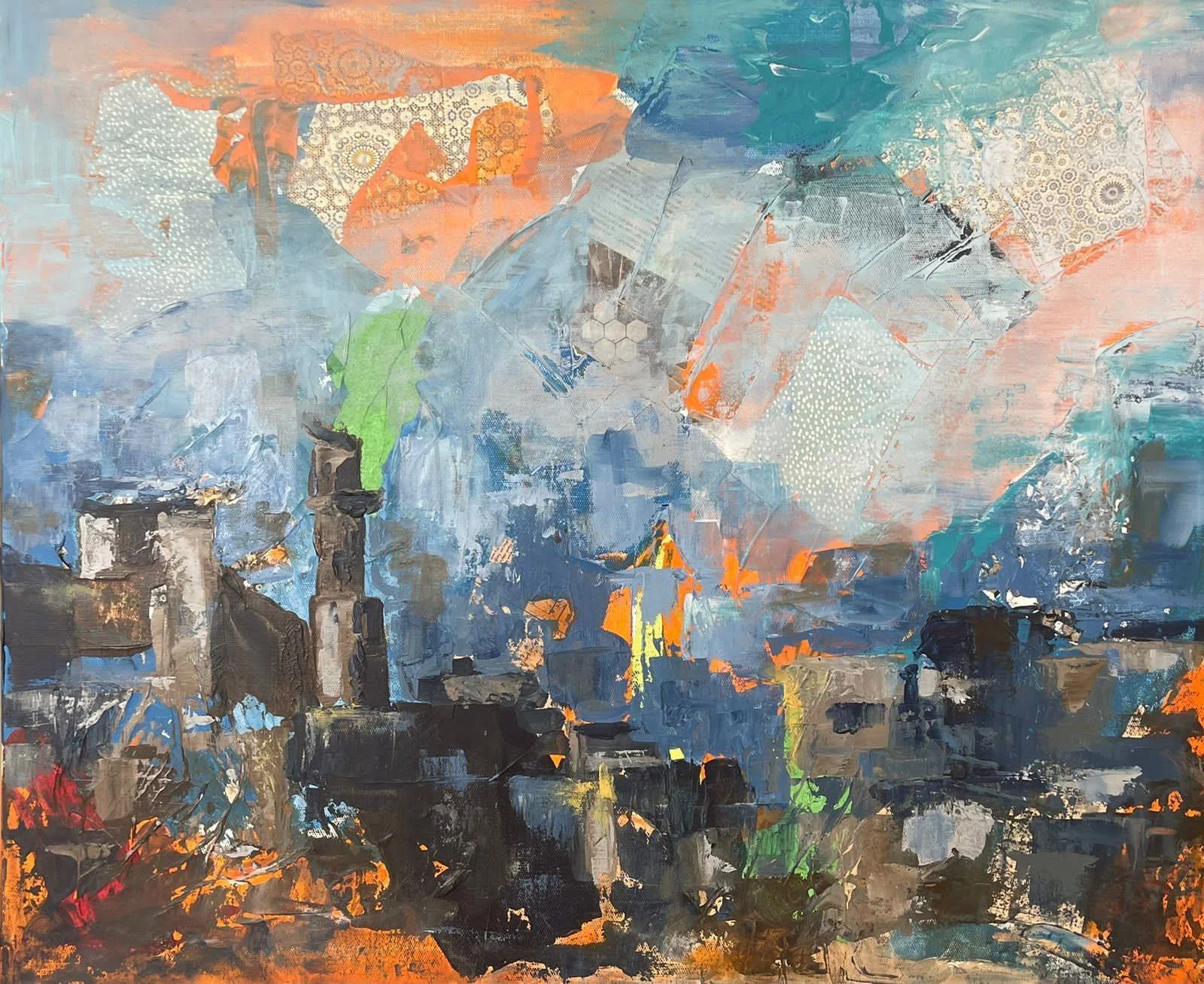 بلوحة تروي حكايات غزّة.. الفنانة داليا علي تشارك في معرض “كنوز” للفن الراقي في لندن