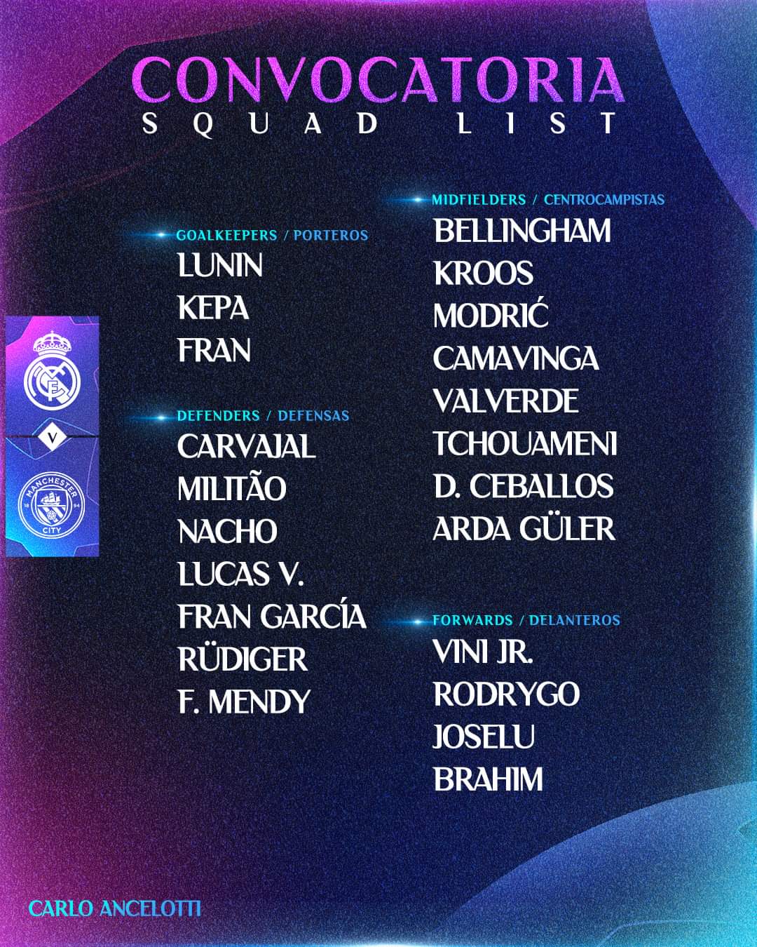 ريال مدريد يكشف عن القائمة التي ستواجه مانشستر سيتي