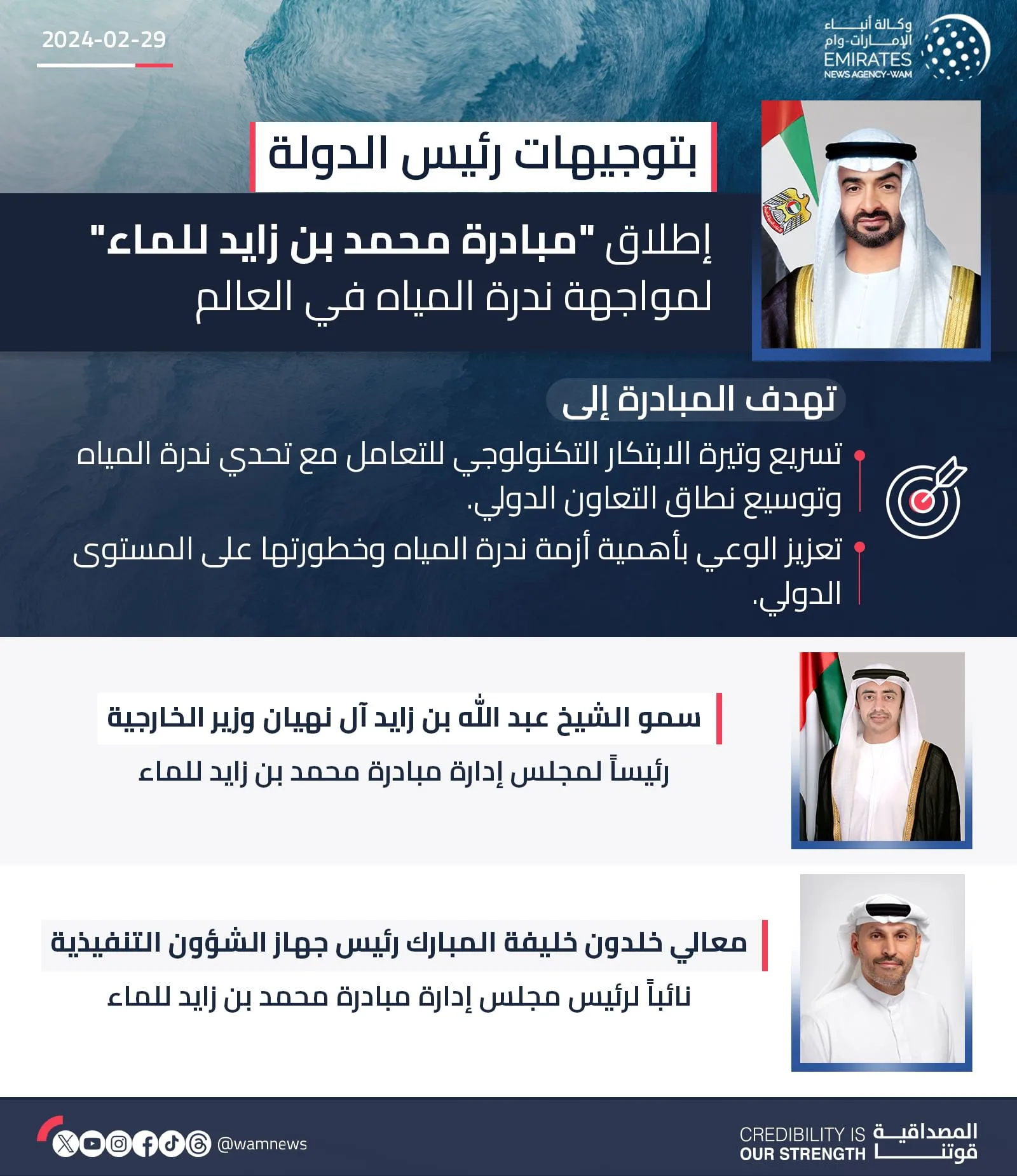 بتوجيهات رئيس الدولة.. إطلاق “مبادرة محمد بن زايد للماء” لمواجهة ندرة المياه في العالم