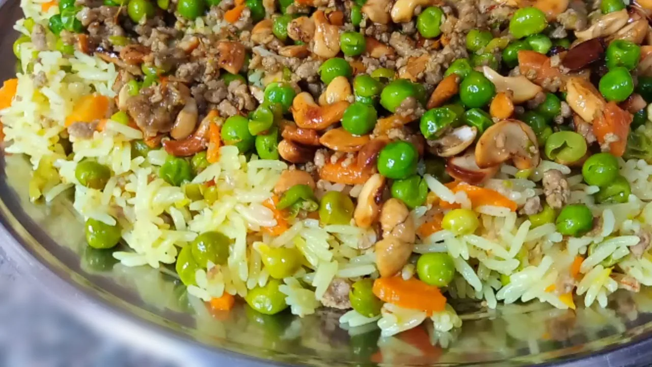 خطوات تحضير مقلوبة الأرز والبازلاء