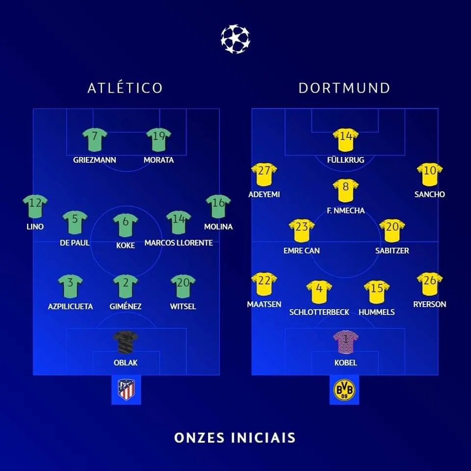 أتلتيكو مدريد وبوروسيا دورتموند.. التشكيلة الرسمية