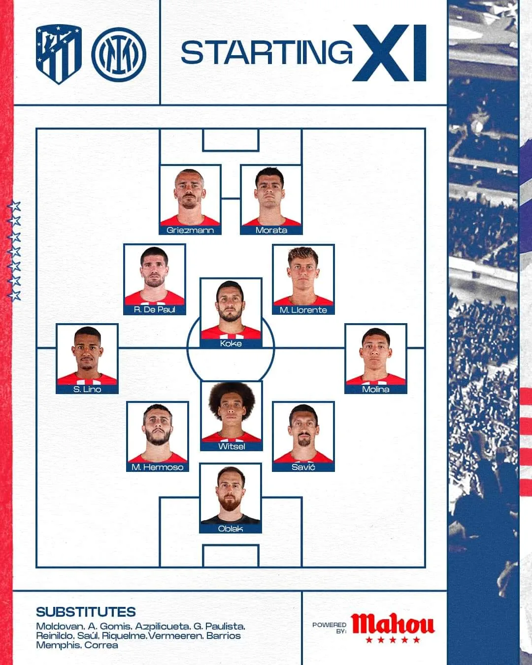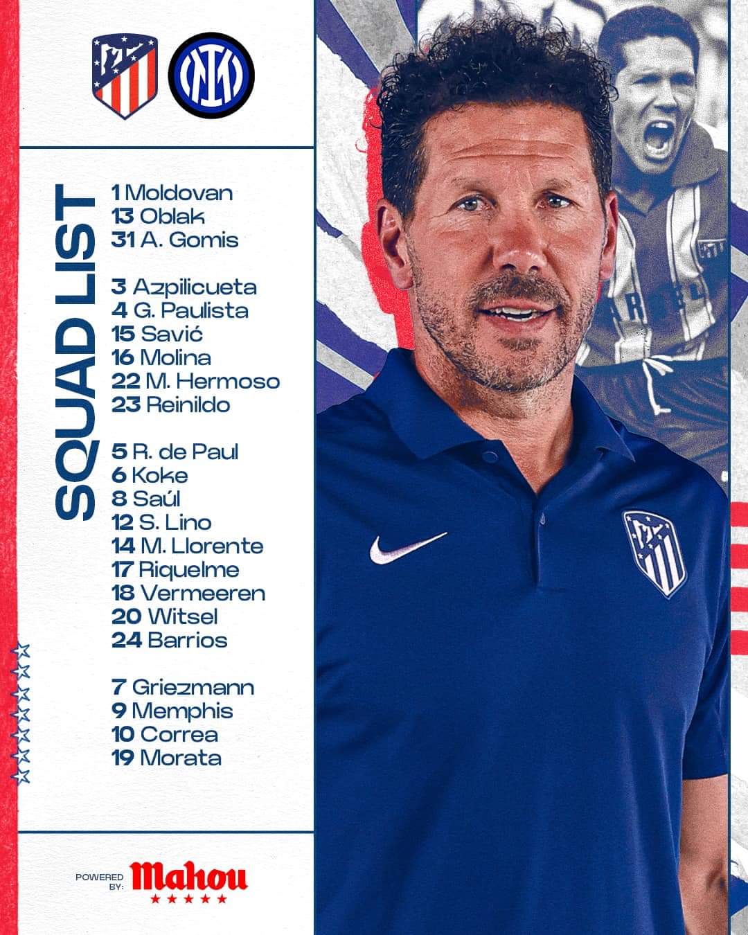 قائمة أتلتيكو مدريد لمواجهة إنتر ميلان