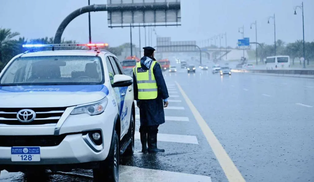 شرطة الشارقة تغلق عدداً من الطرق بسبب الأمطار