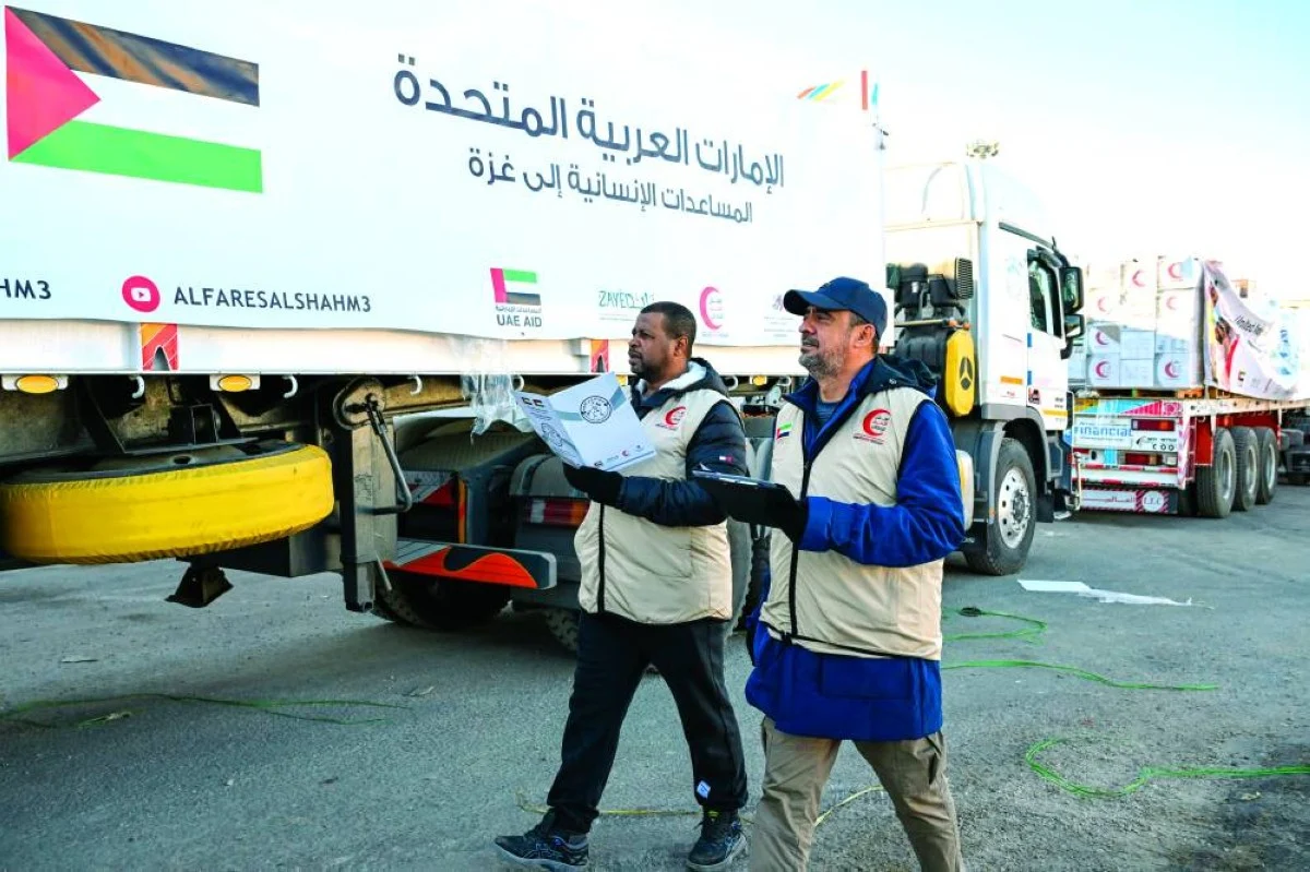 “الفارس الشهم 3”.. 100شاحنة مساعدات إماراتية تحمل 1442 طنا تدخل إلى قطاع غزة منذ بداية الهدنة