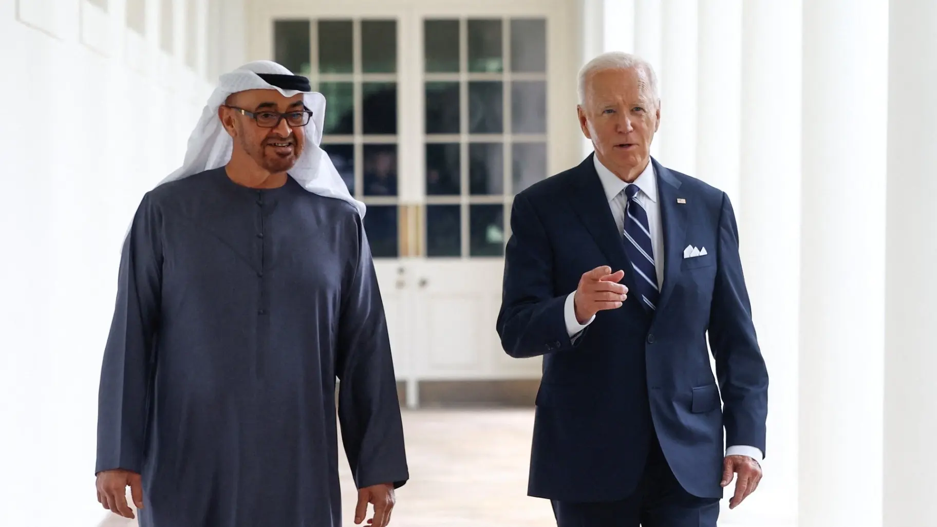 محمد بن زايد وجو بايدن يبحثان العلاقات الاستراتيجية بين البلدين والتطورات الإقليمية والعالمية