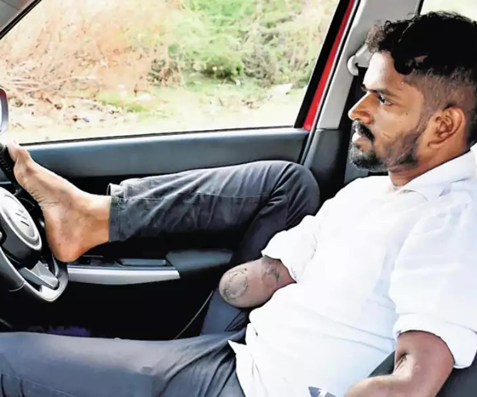 شاب مبتور اليدين يحصل على رخصة قيادة