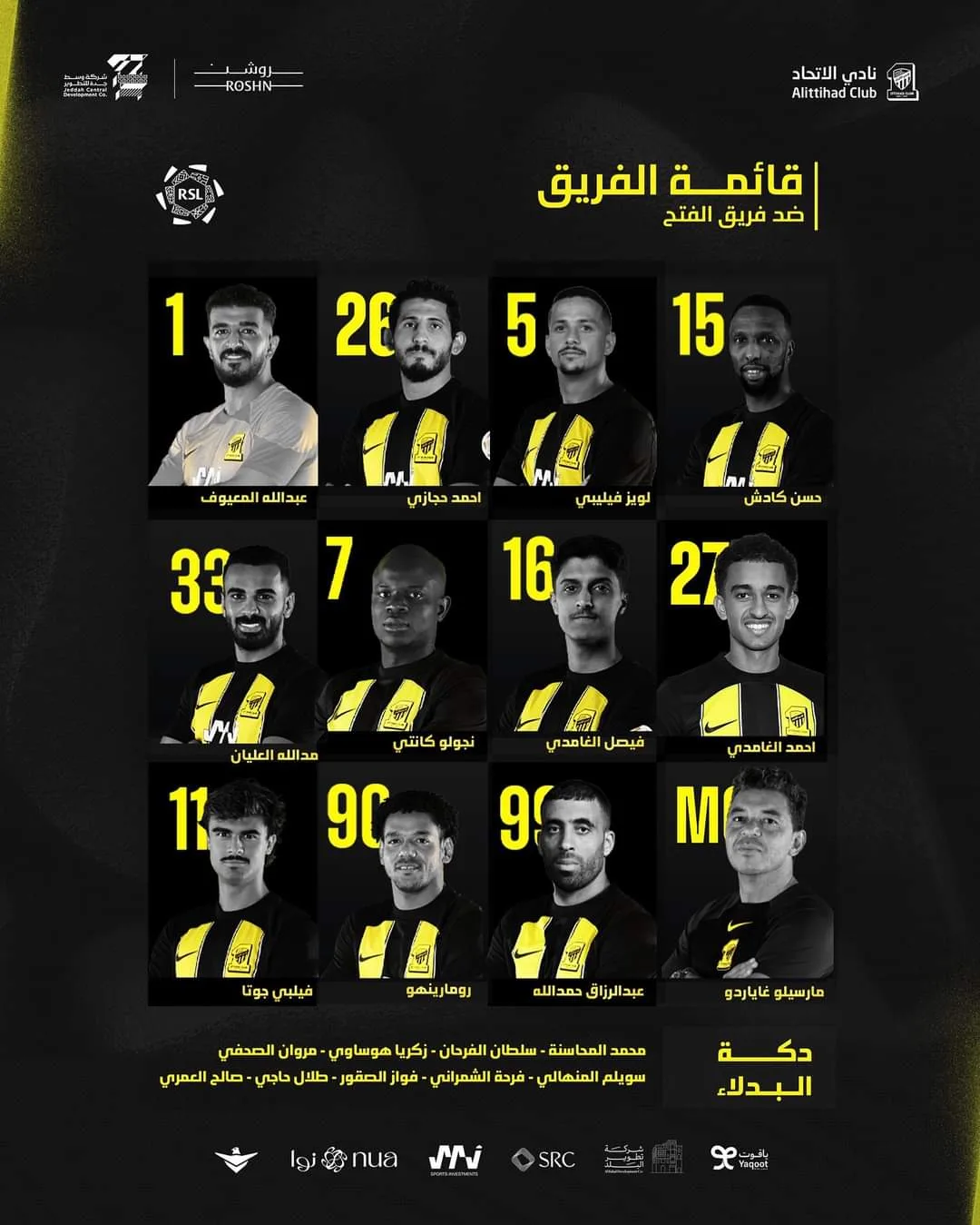 حمدالله يتصدر قائمة الاتحاد الأساسية ضد الفتح