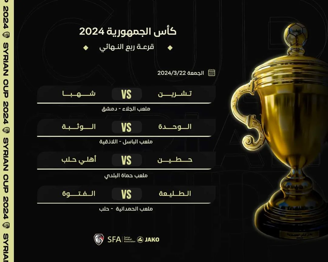 مواعيد مباريات ربع نهائي كأس الجمهورية في سوريا