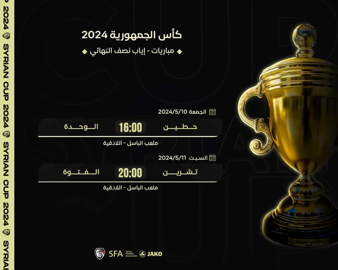 تحديد مواعيد مباريات إياب نصف نهائي كأس سوريا