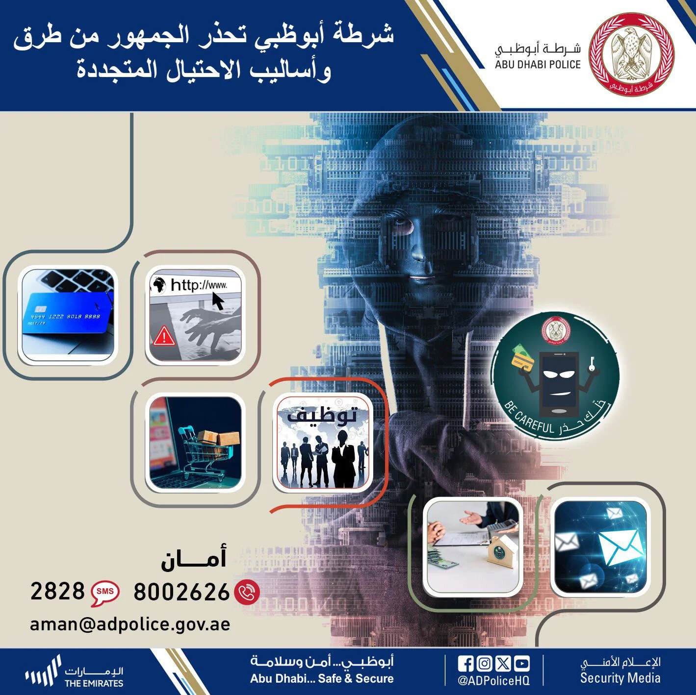 شرطة أبوظبي تحذر الجمهور من طرق وأساليب الاحتيال المتجددة