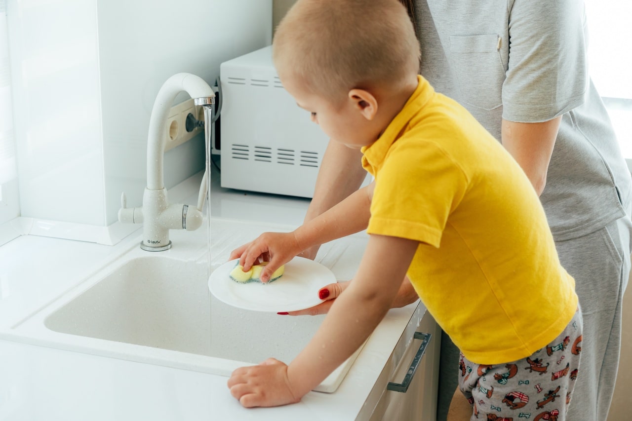 كيف تعلم طفلك غسيل الأطباق في المطبخ