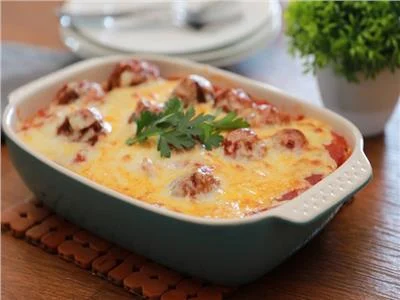 طريقة صنع مكرونة مع كرات اللحم والجبن بالفرن