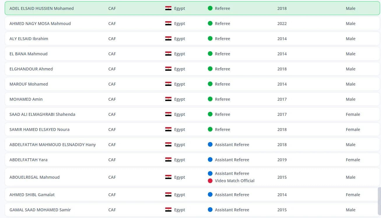 فيفا يعتمد قائمة الحكام الدولية في مصر