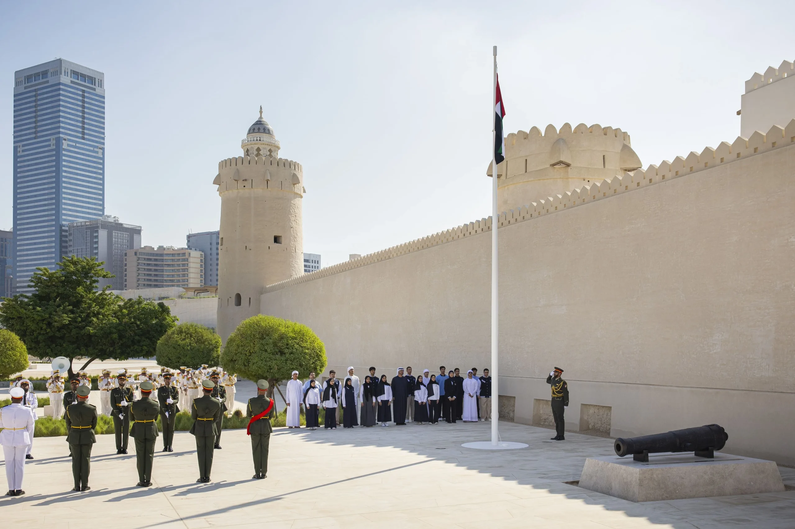 رئيس الدولة يرفع علم الإمارات على سارية قصر الحصن في أبوظبي