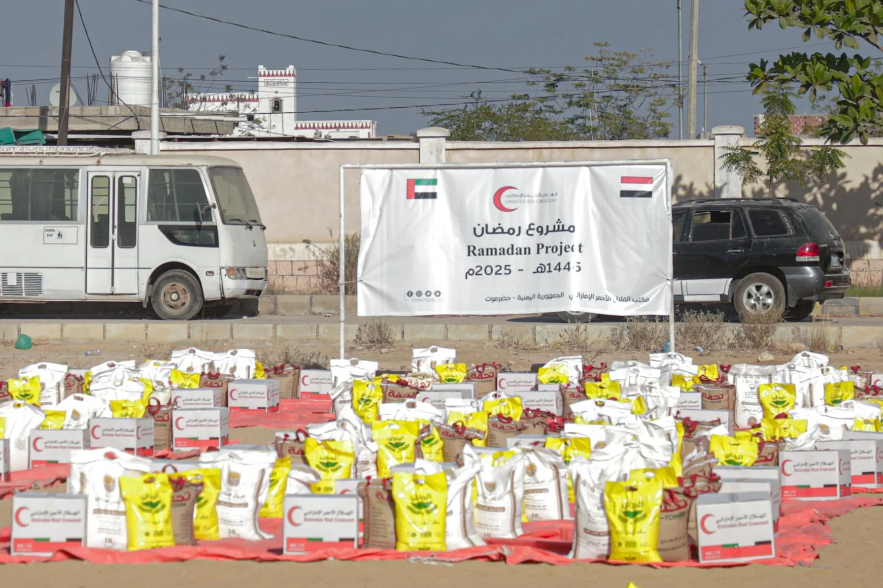 “الهلال الأحمر” تدشن برنامج المير الرمضاني لدعم الأسر المتعففة في حضرموت